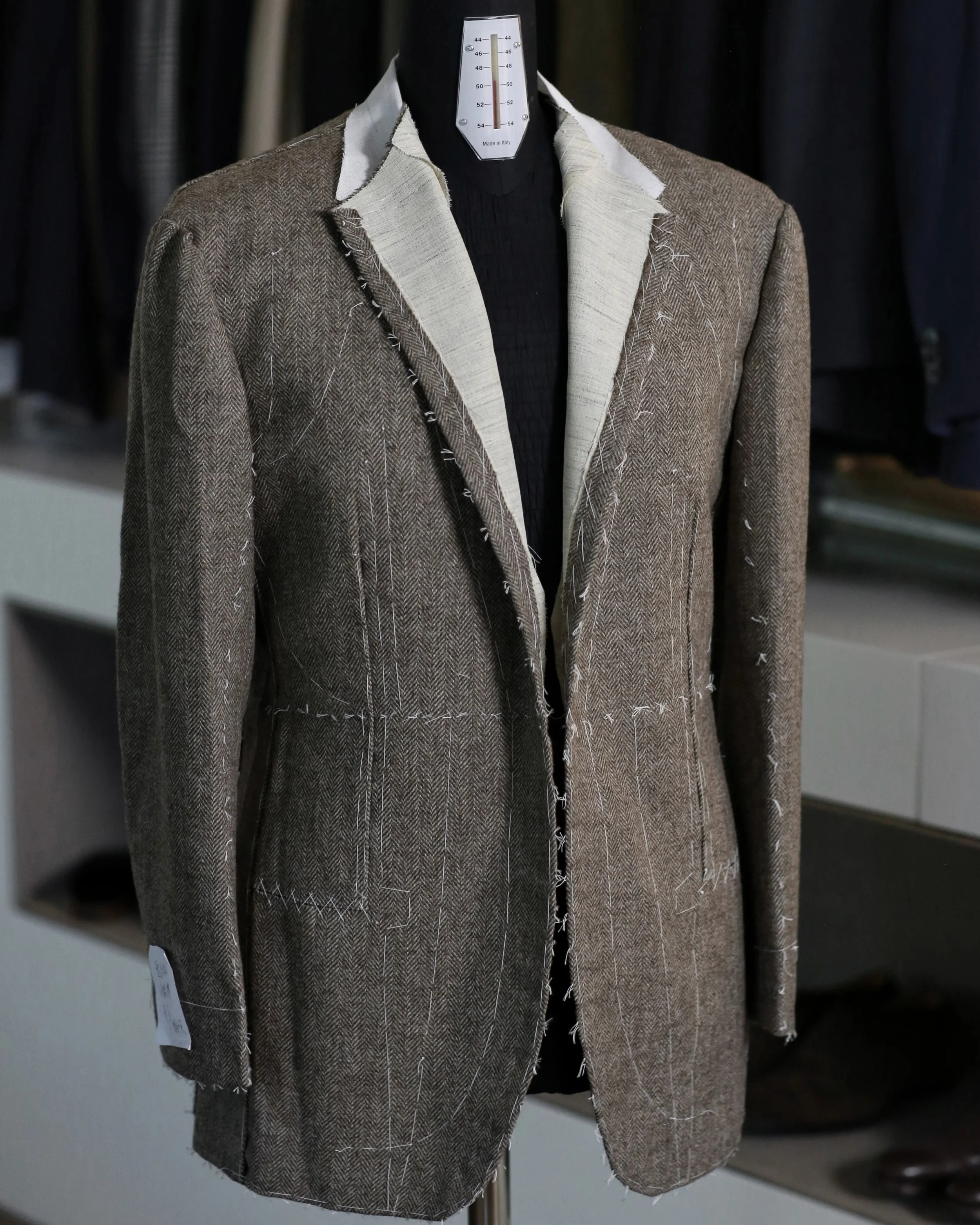 Tailored jackets, suits, and trousers, available MTM or hand cut & hand made on our bespoke line for you. Returning clients order directly. New clients will be contacted after ordering to confirm sizing.